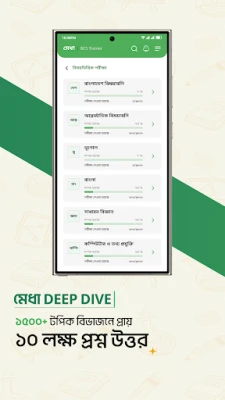 প্রতিদিনের প্রস্তুতিকে সহজ করতে মেধা-বিসিএস ট্রেইনার নিয়ে এসেছে 'Daily Live' MCQ পরীক্ষা, যা দৈনন্দিন রুটিনের ফাঁকেও আপনাকে এগিয়ে রাখবে। বিসিএস স্ট্যান্ডার্ড, বিষয়ভিত্তিক মৌলিক ধারণা পরিষ্কার করার পরীক্ষা এবং আসন্ন যেকোনো সরকারি পরীক্ষার জন্য বিশেষায়িত মডেল টেস্ট – এই তিন ধরনের পরীক্ষায় অংশ নিয়ে আপনি প্রতিদিন নিজের জ্ঞান যাচাই করতে পারবেন। এছাড়া, 'Deep Dive' ফিচারের মাধ্যমে সিলেবাসের ১৫০০টি টপিক থেকে আপনার দুর্বল ক্ষেত্রগুলো চিহ্নিত করে সেগুলোর উপর যত খুশি অনুশীলন করতে পারবেন। বিগত বছরের বিসিএস সহ সকল সরকারি পরীক্ষার প্রশ্ন-উত্তরের সম্পূর্ণ বিশ্লেষণও এখানে পাবেন, যা আপনার দুর্বলতা কাটিয়ে উঠতে সহায়ক হবে।