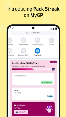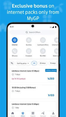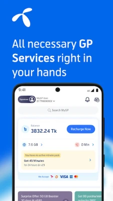 MyGP আপনার দৈনন্দিন টেলিযোগাযোগের এক অবিচ্ছেদ্য সঙ্গী। এই একটি অ্যাপ্লিকেশনের মাধ্যমেই আপনি আপনার পছন্দের ইন্টারনেট প্যাকে ৫০% পর্যন্ত বোনাস ভলিউমের অনন্য সুযোগ উপভোগ করতে পারবেন, যা শুধুমাত্র MyGP ব্যবহারকারীদের জন্য। সহজেই আপনার মূল অ্যাকাউন্ট ব্যালেন্স, ইন্টারনেট, মিনিট এবং এসএমএস-এর বিস্তারিত তথ্য এক নজরে দেখে নিন। ডেবিট/ক্রেডিট কার্ড অথবা বিকাশ ও নগদের মতো ডিজিটাল ওয়ালেট যোগ করে মুহূর্তেই রিচার্জ করুন আপনার প্রয়োজন অনুযায়ী। এছাড়াও, আপনার নিজস্ব পছন্দের প্যাক তৈরি করার স্বাধীনতা পান ফ্লেক্সিপ্ল্যানের মাধ্যমে।