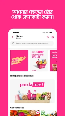 প্রতিদিনের রুটিনে নতুন স্বাদের ছোঁয়া দিতে ফুডপ্যান্ডা-এর অগণিত রেস্তোরাঁর সম্ভার আপনার অপেক্ষায়। দেশি হোক বা বিদেশি, ঐতিহ্যবাহী হোক বা আধুনিক – বার্গার থেকে বিরিয়ানি, সুশি থেকে স্যান্ডউইচ, আপনার পছন্দের সকল রেস্তোরাঁ থেকে তাজা খাবার এখন আপনার হাতের মুঠোয়। শুধু খাবার নয়, ফুডপ্যান্ডা শপ এবং প্যান্ডামার্টের মাধ্যমে আপনার দৈনন্দিন কেনাকাটার অভিজ্ঞতাও আমরা বদলে দিয়েছি। মুদিখানা থেকে ওষুধ, পানীয় থেকে ইলেকট্রনিক্স, এমনকি ছোটখাটো উপহারও এখন সহজেই আপনার প্রিয় দোকান থেকে খুঁজে পাবেন। তাড়াহুড়ো থাকলে লাইনে না দাঁড়িয়ে আপনার অর্ডার নিজে তুলে নেওয়ার সুবিধাও রয়েছে, যা আপনাকে সময় ও অর্থ দুই-ই সাশ্রয় করবে।